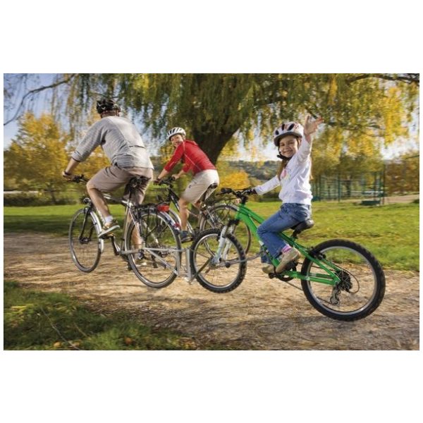 Sportieve ouders die graag op de fiets op pad gaan. Je kind(eren) kunnen stukken zelf fietsen en als ze moe zijn, koppel je ze gewoon aan je eigen fiets!